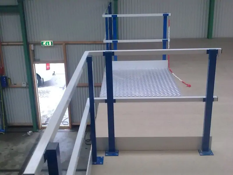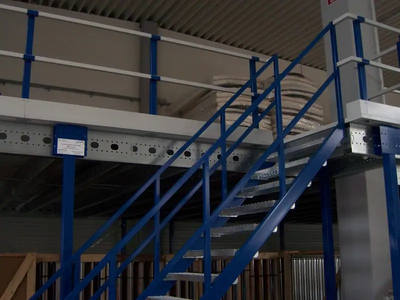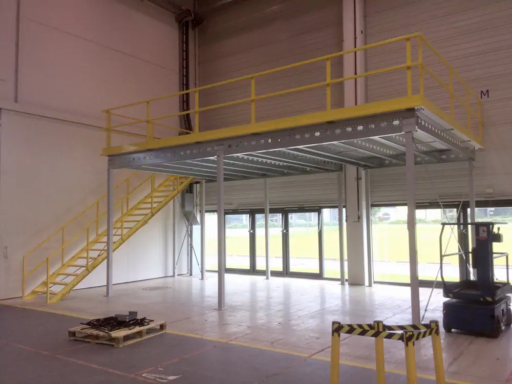 Bild unten: Lagerbühne Konstruktion mit Gitterwand.