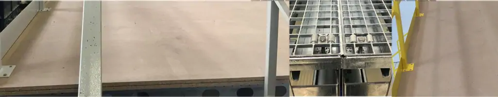 Als Standardausführung verwenden wir eine Spanplatte mit weißer Beschichtung an der Unterseite. Die Oberseite ist in „Natur“ ausgeführt (Brandklasse Cfl-s1). Je nach Wunsch gibt es unterschiedliche Ausführungen wie den Anti Slip Belag (Brandklasse Bfl-s1).